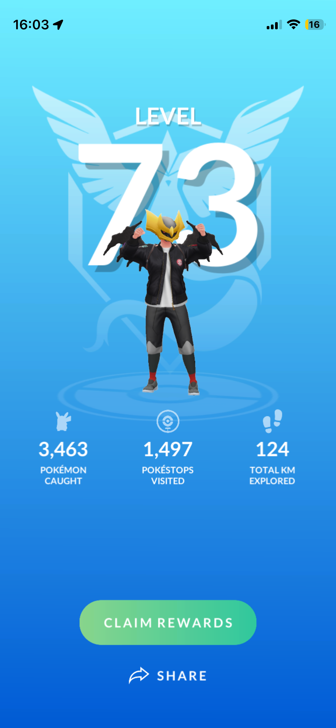 I reached Level 73 on Pokémon GO a couple of days ago.