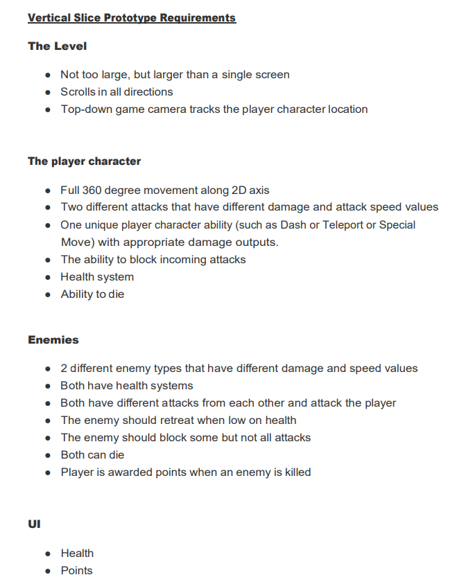 In the 1st week, we were given a brief by our Lecturer. We were to make a 2D top-down hack ‘n slash computer game. The following were our requirements: