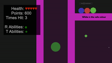For teleporting, the player can teleport to any circle that matches their current colour if they possess the ability for that colour. They can also teleport to checkpoints that are gradually revealed as they progress through the game, and even teleport their moving bullets.