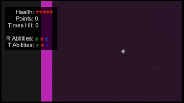 The health system for my game consists of 5 hearts; depending on the strength of the enemy, a player can lose 1, 2 or 3 hearts. In the case that they would be left with 1 or less hearts, they are forced into the white mode, with 1 heart, where all firing stops. There also health consumables (denoted H) which restore a number of hearts depending on their size. The 3 main components to the coding of this: are the player receiving damage, the player restoring health, and the updating of the overlay displaying the health.